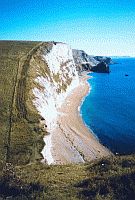 - Towering chalky cliffs viewed from Swyre Head