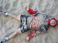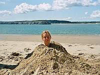 - Rachel gets considerably buried in the sand