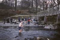 - Per braving a chilly river crossing