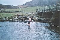- Confidently striding out across the river